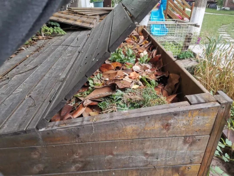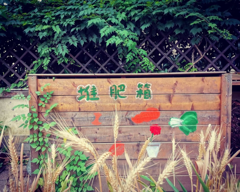 在幼儿园的种植地角落里,搭建了一个大大的堆肥箱。堆肥箱的大肚腩每天吃进大量的园林垃圾,清扫出的落叶树枝,自然角、种植地清理出的杂草,孩子点心后的瓜壳果皮,都可投入堆肥箱,在堆肥箱里密闭焖上个几个月,开箱挖出来的是又黑又细营养土,掺洒在种植地里、花盆里,促进花草生长。