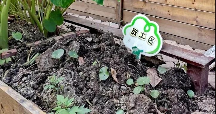 堆肥后的有机土可设置专门的取土区,供日常方便使用。日常的的种植地、自然角各种种植活动、添土环节都可以从堆肥箱里挖取,很好地解决了急需泥土却无处取的困境。