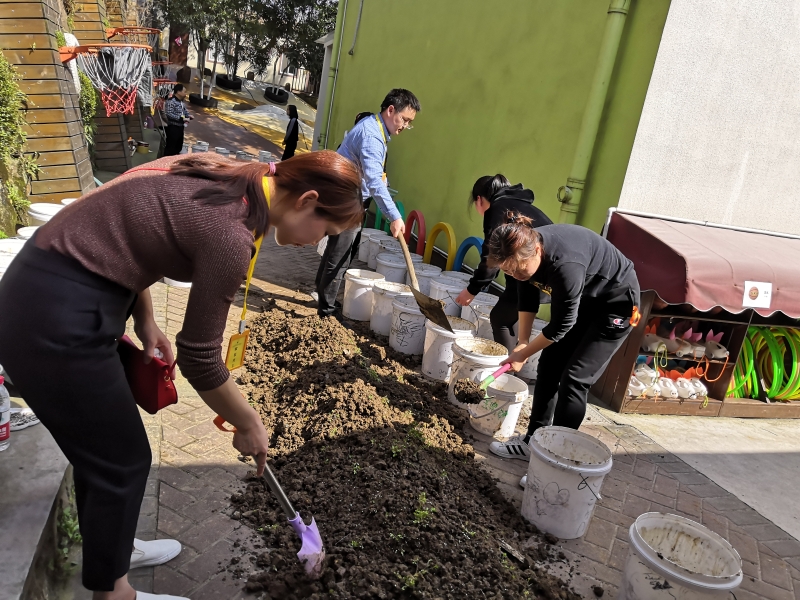 幼儿园每年都有播种向日葵活动,每个孩子都会种植一盆向日葵,往年种植用土都是家长和孩子自行收集或购买的。自从有了堆肥箱,全园一百多个孩子的种植土都可以自给自足了。