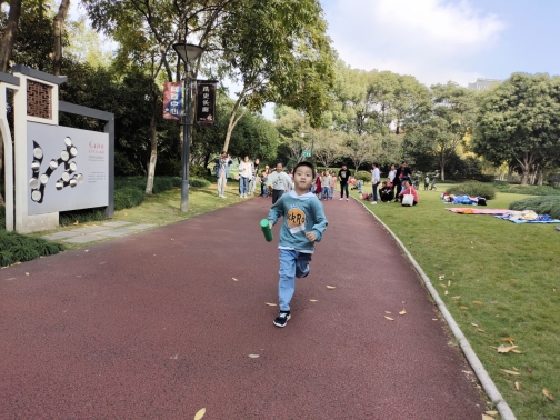 拼搏向前的“奥运健儿们”在跑道上奔跑着,小朋友们在草坪上嬉戏着,他们的欢声笑语,让前来体育公园锻炼的人们停下脚步,加油声,欢笑声响彻了整个公园……