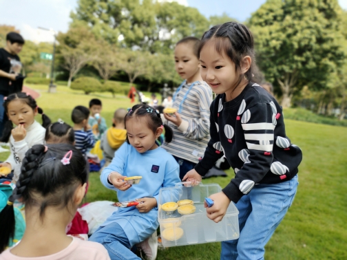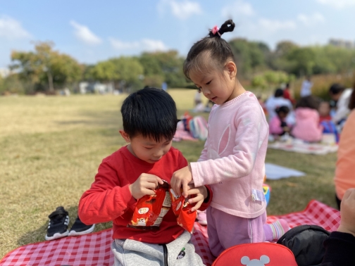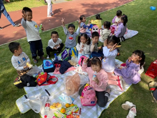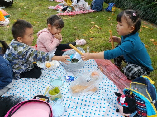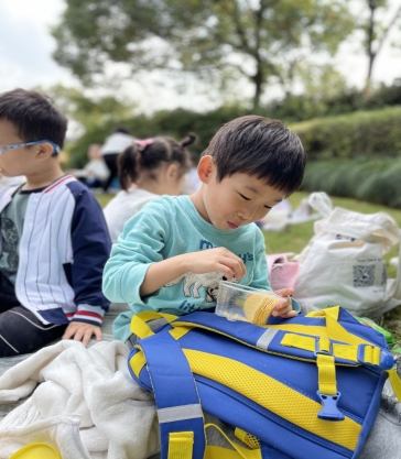 振奋人心的运动项目结束后,终于到了孩子们最爱的环节——野餐。你吃我的,我吃你的,把包中的食物分享给自己的小伙伴才是秋游最大的乐趣。野餐过后,老师们不失时机地进行环境保护的教育,和孩子们清理地面垃圾,将垃圾分类进行到底。