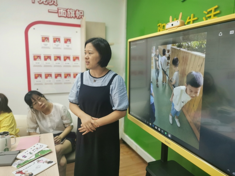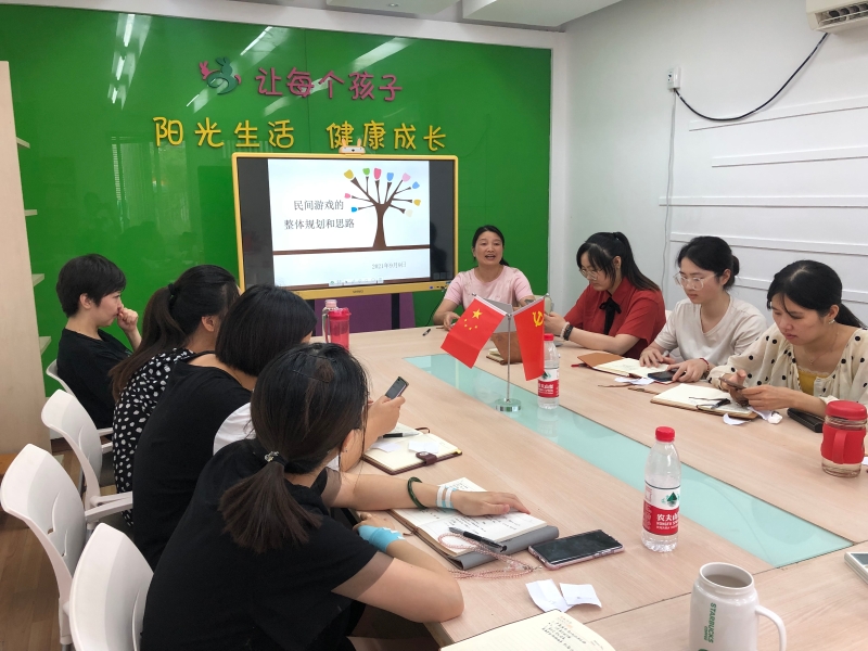 基于上学期园区特色教研活动《传承经典文化 玩转民间游戏——传统民间游戏的创新与运用》实施过程中存在的问题和不足,2021年9月9日贾家弄园区开展了第一次园本研修活动。张振英老师链接本学期的特色教研重点,聚焦本学期园区民间游戏的整体规划和思路进行介绍,分别从环境的营造、民间游戏的架构和实施两方面与老师们进行分享交流,使全园教师对特色研修方向更加清晰,在落实民间游戏的过程中更具目的性和深度,同时,对园区资源(包括人力资源和环境资源)进行统整,将角色游戏与民间游戏场的环境融合与打造,营造“传统民间游戏”的时代背景,为孩子们的沉浸式体验做好铺垫。