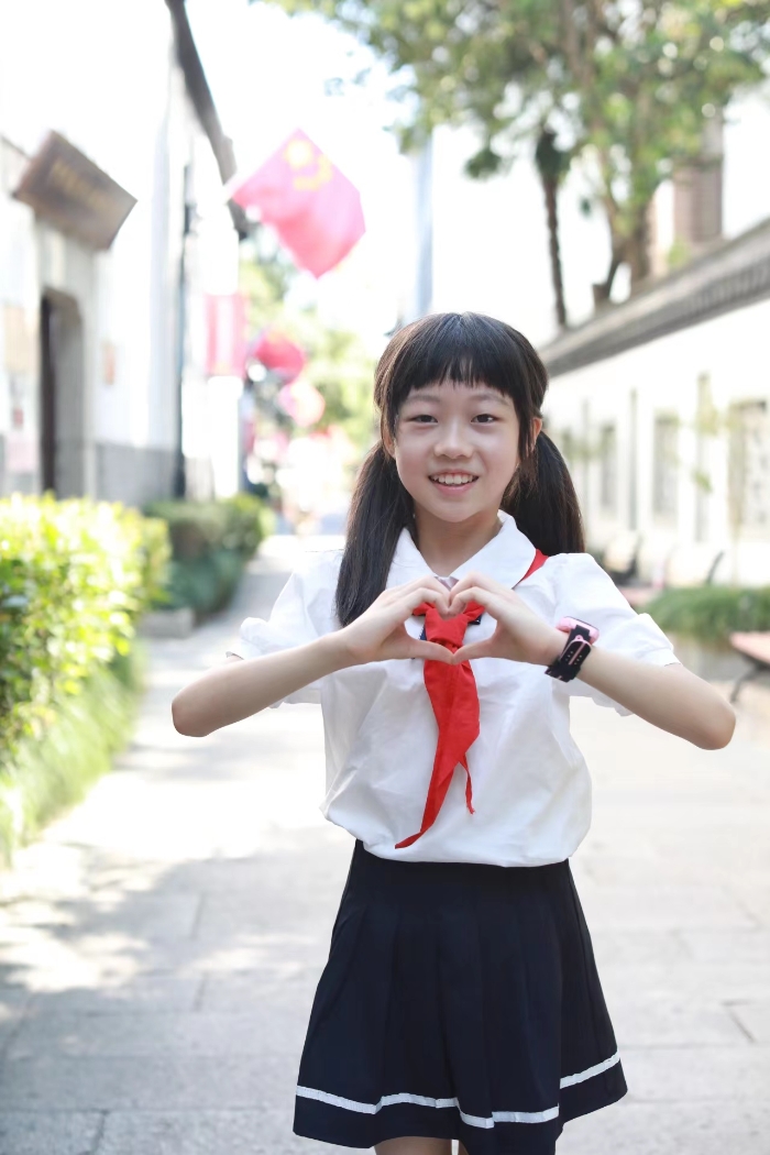吴婧语:来自四(2)中队,喜欢跳舞、画画、阅读等,积极参加各种公益活动,在老师和家长的教导下,她懂得了怎样感恩、乐观、坚持。只要是她所选择的事情,她所选择的道路,她都会非常坚定地走下去。