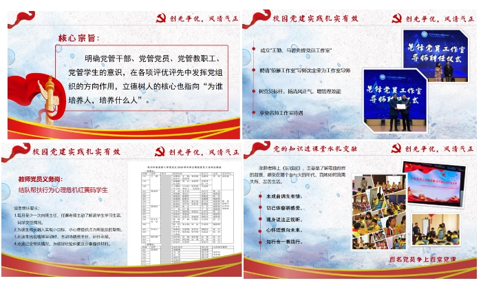 卖鱼桥小学明确党管干部、党管党员、党管教职工、党管学生的意识,校园党建氛围浓郁,定期的书记党课、初心使命锤炼行动、小微权力清单、教授特级领航发展、先锋党员工作室引领等党建实践,扎扎实实、创先争优。尤其是,教师党员结对帮扶行为心理危机、学业成绩有待提升的学生,实现公办教育的全纳、全心和全程,得到大家的高度肯定。