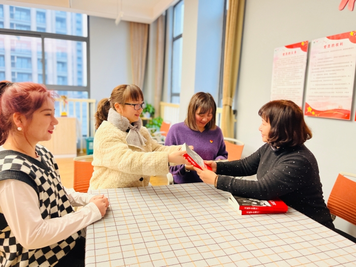 杭州市康桥学前教育集团党支部书记方小红第一时间分别赶到集团的三个园区,把《习近平在浙江》这本红色书籍亲自送到党员的手中。为了鼓励党员老师更好地投入到学习中,提出相应的学习计划:本次学习采用自主学习与集中学习、分章荐读与线上线下交流相结合的多元学习方式进行深度学习。听取方书记的要求后,党员老师接捧热乎乎的2本书籍,表示寒假可以好好阅读,做好更好地充电与思想洗礼。