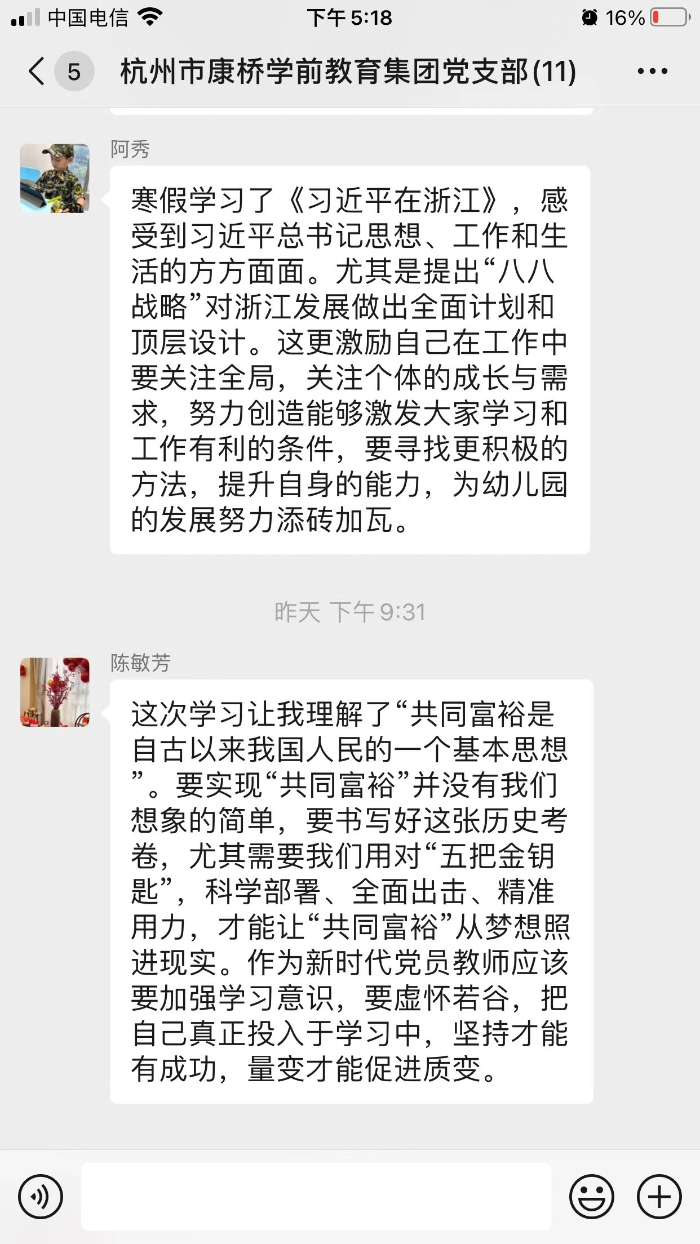 春风化雨,润物无声,浙江是习近平新时代中国特色社会主义思想重要萌发地。习近平同志在浙江工作期间率先垂范、大力倡导“求真务实”之风,已深深融入广大党员的血脉,《习近平在浙江》一书成为了我们学习的宝贵资源。2022年新年伊始,杭州市康桥学前教育集团党支部为各位党员送上了新年的第一份大礼“精神宝库”,同时也为2022年度的春训冬训拉开了帷幕。