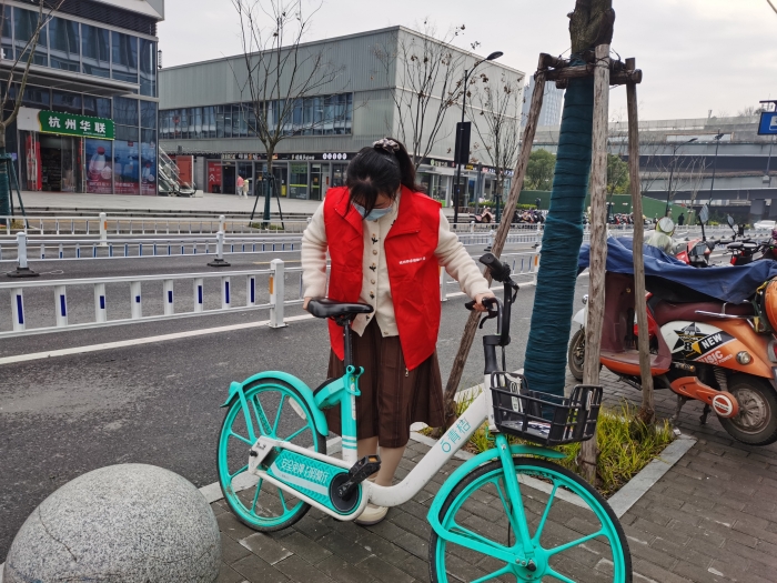 青年团员教师还自发对幼儿园内及周边环境进行卫生清整和整理工作。有的老师主动清洁摆放在道路边的共享单车,有的主动打扫幼儿园周围的道路设施,还有几名教师为幼儿园周边及社区捡拾垃圾、擦拭围栏等,他们各有分工、各司其职,干劲十足,用实际行动将助人为乐、无私奉献的“雷锋精神”传承下去。