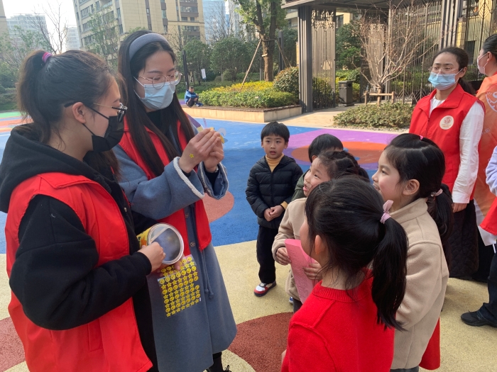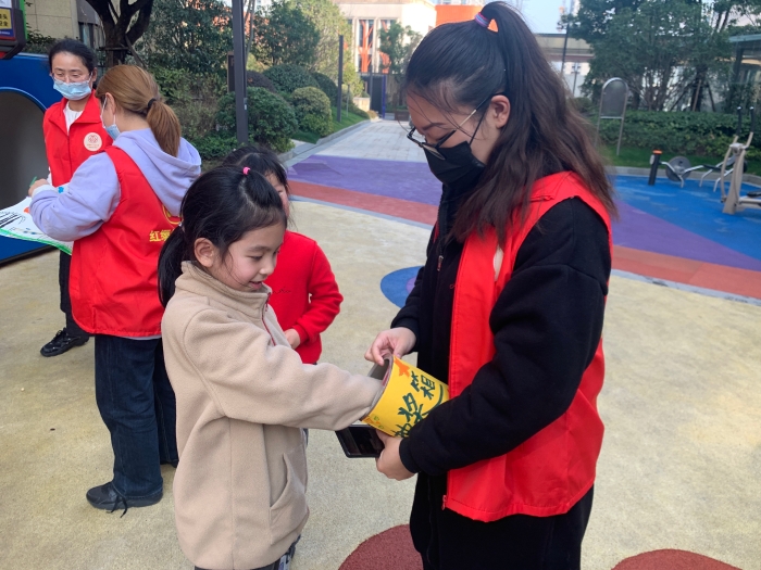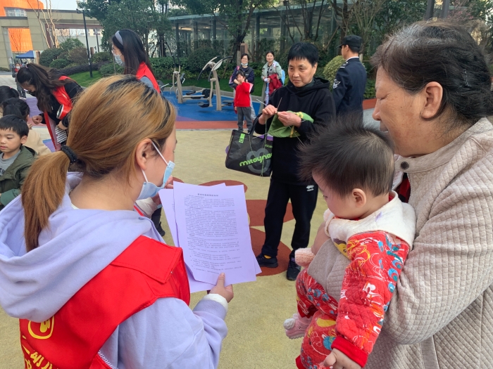 志愿者们给社区居民科普春季传染病的小知识,为社区家长提供保教知识宣传。