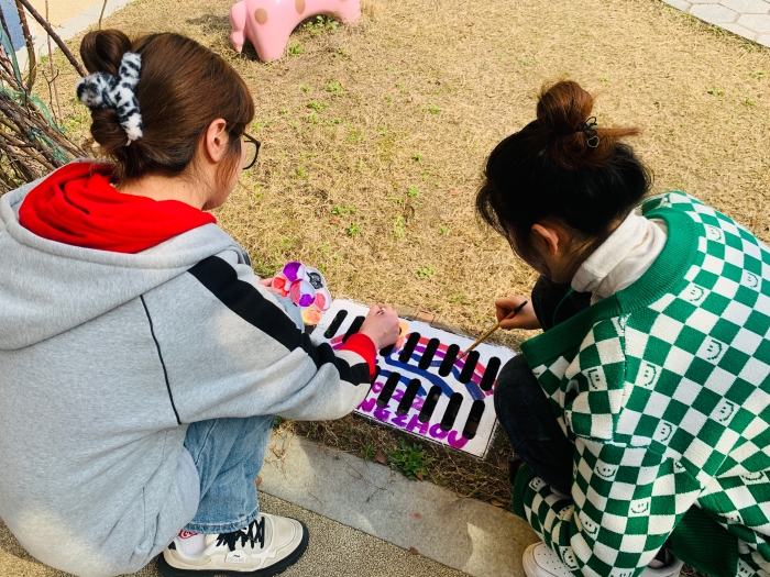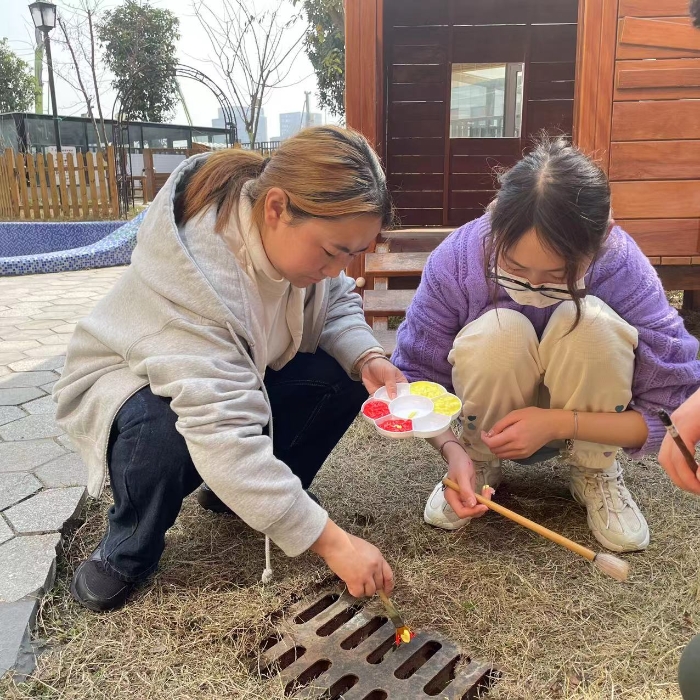 老师们用自己的绘画特长,在园内窨井盖上绘画亚运相关元素的图案,创设迎亚运的环境氛围。