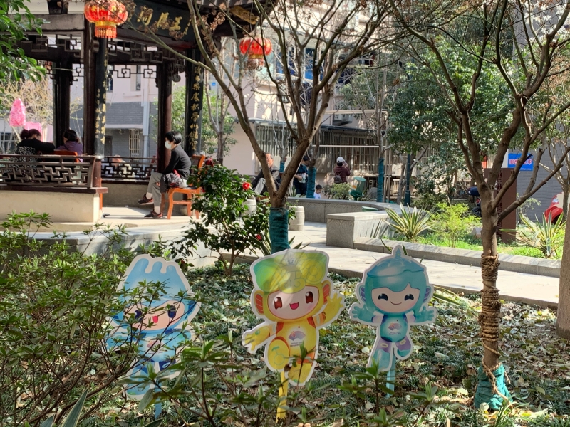 今年最火的“江南忆”亚运吉祥物组合也出现在大家的视线中。青蓝小学的团员教师们和社区的工作人员一齐将杭州亚运会吉祥物“宸宸”“琮琮”“莲莲”放置于公园最显眼处。三个亲密无间的好伙伴,将作为传播奥林匹克精神、传递和平与友谊的使者,向亚洲和世界发出“2022,相聚杭州亚运会”的盛情邀约。