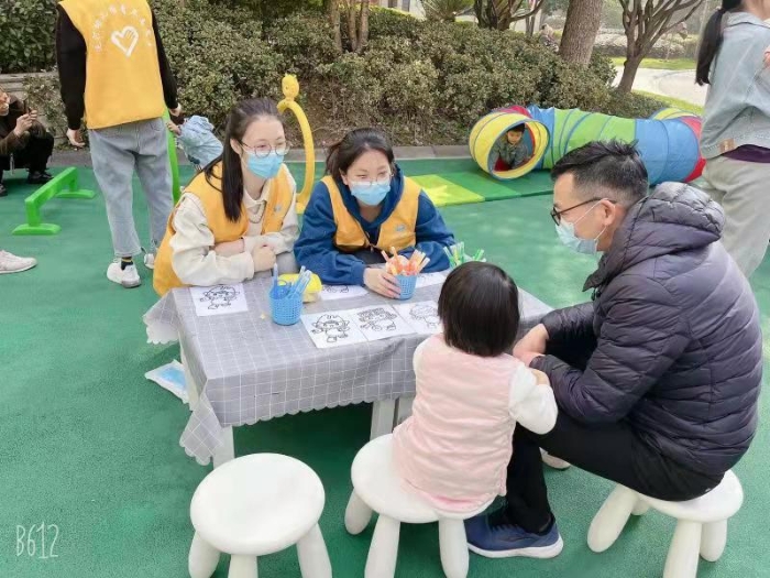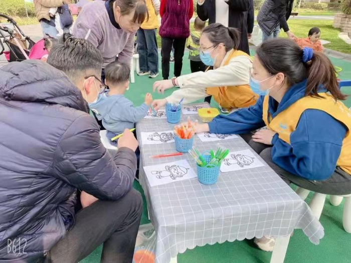为了更好地宣传早期教育,转变家长的育儿理念,为0—3岁婴幼儿家庭带去更全面、更科学的早教指导服务, 2022年3月初,杭州市星澜幼儿园的团员教师们走进华盛达阅城社区开展以有趣的涂色和体育游戏为主要内容的“早教进社区”团员活动。