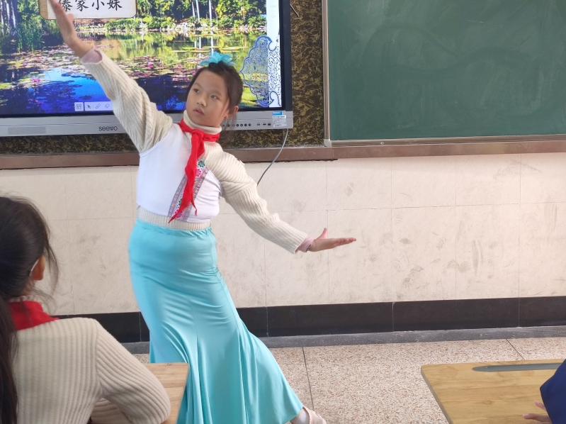 能说会唱、能歌善舞,各项才艺百花齐放。在本次队活动展示课中,少先队员们各尽其才,将自身才艺于课堂活动融合在一起。有的小队在学习英雄榜样的课上,用诗朗诵的方式歌颂巾帼英雄;有的队员在学习民族服饰与文化时跳上一曲傣族舞;有的小队拿起三句半的乐器,告诉我们勤俭节约的好办法;有的小队手拉手齐唱歌,用美妙的歌声唱出中国少年先锋队的历史……