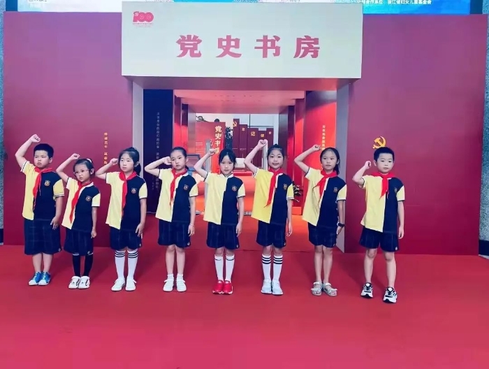 然后,由党组织副书记姚建玲代表学校作了题为《四课四化:杭州市育才大城北小学探索立起来的信仰教育》的工作汇报。姚书记向郁书记和全体老师汇报了学校在“党的知识”课程实施过程中坚持体系化、校本化、常态化、课程化等“四化”工作原则,落实讲好党的故事、唱好党的歌曲、了解党的知识、开展党的活动等“四课”教育内容、载体、策略和方法,把党的信仰教育全员、全程、全方位地融入学校教育,在学生心田播撒爱党、爱国的种子。
