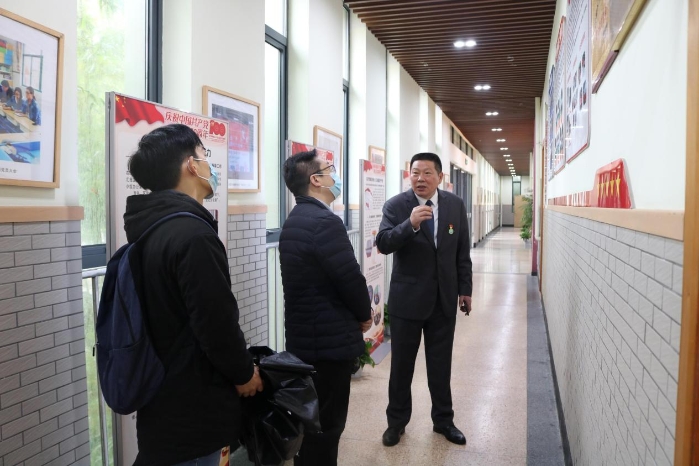 作为党组织领导的校长负责制试点学校,学校紧紧围绕教育抓党建,抓好党建促教育。在近几年的探索中,学校党建工作特色突出,亮点鲜明,进一步激发党建活力,做强党建特色品牌。随着沈书记的引导,徐彬教授一行参观爱心雨伞驿站、党员示范岗以及学校着力打造的党建长廊——片片童心向阳开。