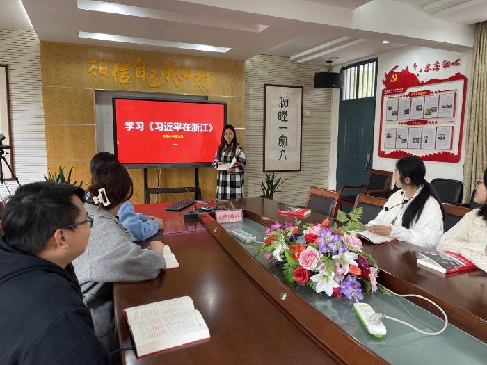 近日来,在我校全体团员教师队伍中掀起了对《习近平在浙江》采访实录学习的浪潮。大家通过个人自学和专题交流等多种方式,不断汲取真理的力量、创新的力量和奋进的力量。在心得交流会上,大家纷纷表示采访实录中流露出真挚的为民情怀、强烈的责任担当、务实的工作作风、宝贵的工作经验、科学的工作理念都将成为自己今后的工作指引。查日军老师有感而发,他说:“‘为民要重在办实事’,虽是短短几个字,但如响鼓重槌,深深印入我脑海。作为一名团干部,要切实了解青少年的想法和喜好,要用心与他们交往,不光要做他们的老师,更做他们的好朋友。”